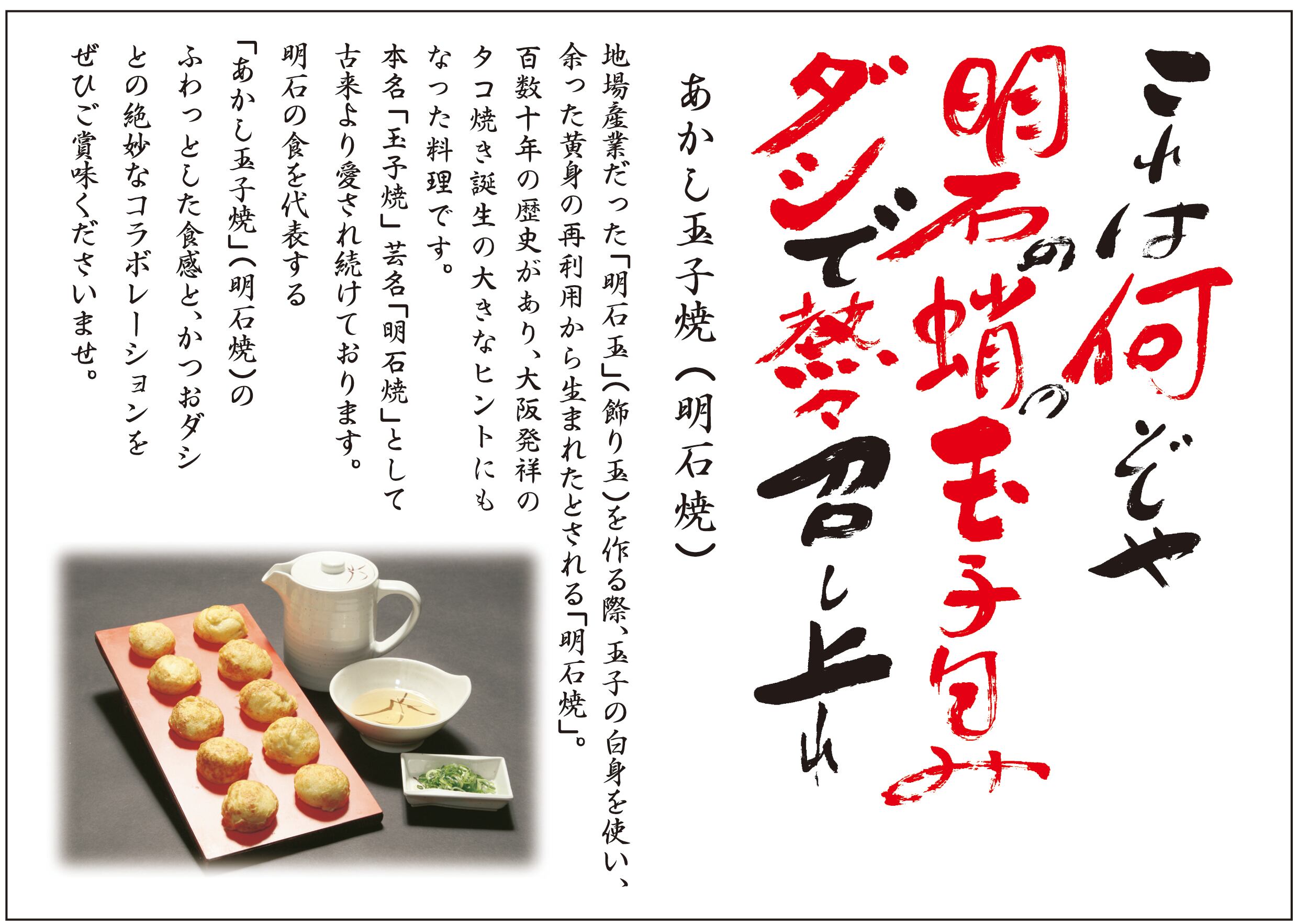 兵庫県明石市を代表するご当地グルメ「あかし玉子焼(明石焼)」特製だしに浸して食べるふわっトロっな至福の食感をぜひご家庭でお楽しみください。
